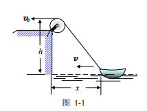 如图 1-1 所示,在离水面高度为 h 的岸边上,有人用绳子拉船靠岸,收绳的速度恒v0,则船在水中的运动为( )。