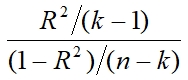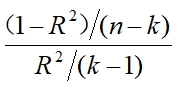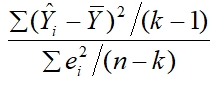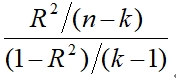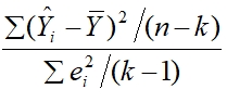 设k为回归模型中的参数个数(包括截距项),则总体线性回归模型进行显著性检验时所用的F统计量可表示为( )。