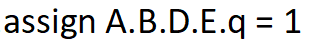 模块A由B、C、D三个子模块实例化,模块D由E子模块实例化,如下图所示,选择中那个选项能顺利通过层次结构来访问模块E种的q变量赋值为1。( )
